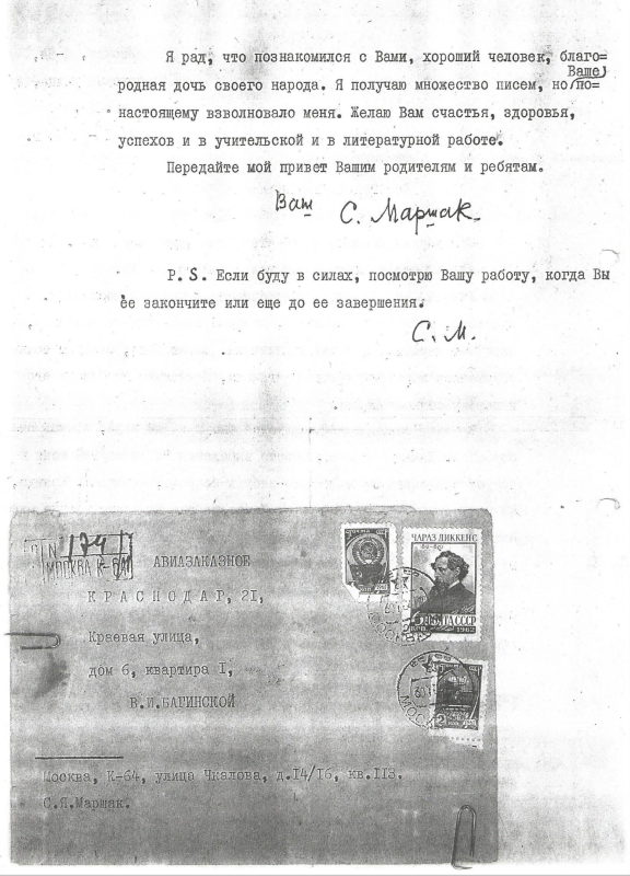 В одном из писем (15.06.1968 г.) И. С. Маршак, ссылаясь на московскую суматошную жизнь, объясняет забывчивость Гинзбурга и советует обратиться к нему ещё раз, рекомендует также обратиться к А.Т. Твардовскому. Виктория Ильинична напишет и Александру Твардовскому, и Чингизу Айтматову, и Юрию Рытхэу, и Сергею Михалкову. Но от всех, за исключением Айтматова, который не ответил вообще, она получит ответы довольно нейтрального содержания.