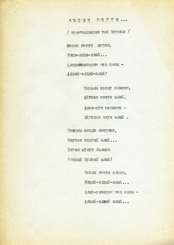 Некоторые из песен крымчаков в кириллической транслитерации из личного архива В.И. Багинской (Гурджи)