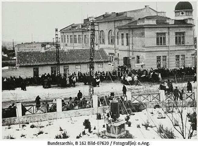 На фото: место сбора евреев и крымчаков на ул. Студенческой  перед отправкой к месту расстрела. Симферополь, 9-12 декабря 1941 г.