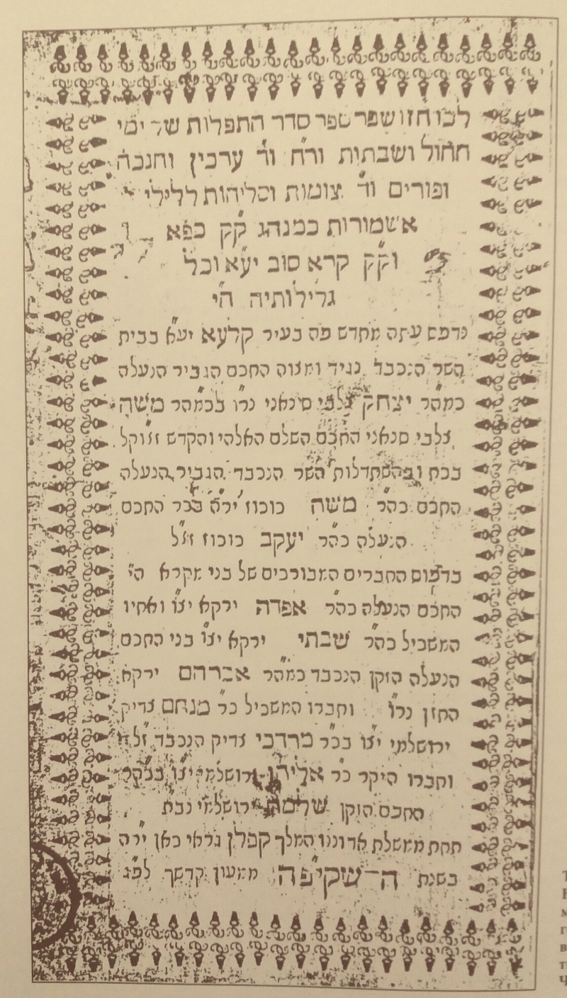 На фото: титульная страница крымчакского молитвенника 1734 года, отпечатанного в караимской типографии Чуфут-Кале. Иллюстрация из монографии М.Б.Кизилова "Крымская Иудея "(Симферополь, 2011. С.212)