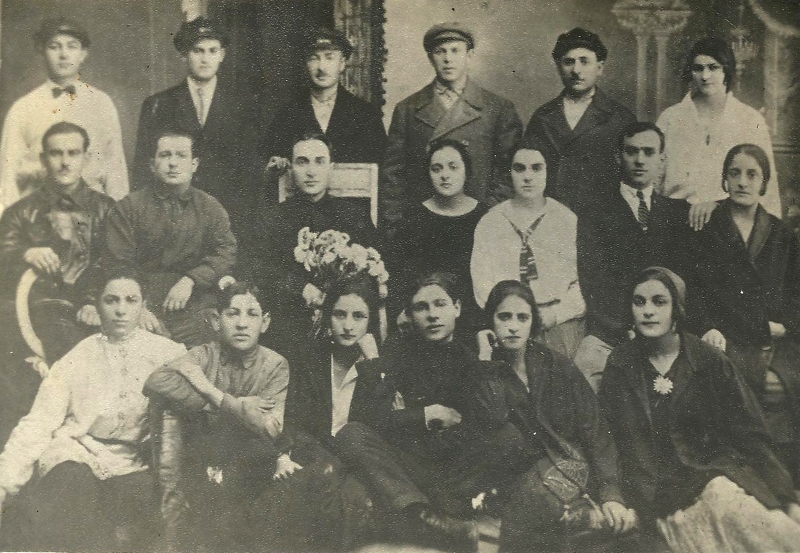 Первый ряд (сидят) слева направо: 1. Анжело (брат Мангупли) - судьба неизвестна. 2. Матушевич Юда - расстрелян. 3. Неизвестная (скорее всего Мангупли). 4. Мангупли Давид - погиб на фронте. 5. Матушевич Катя - расстреляна. 6. Зина Берман (сестра моей бабушки Берман Ривы, муж Аарон, четверо детей) - вся семья расстреляна в 1941 году.